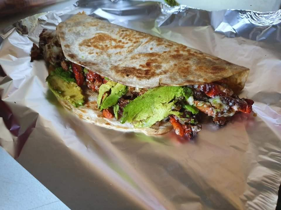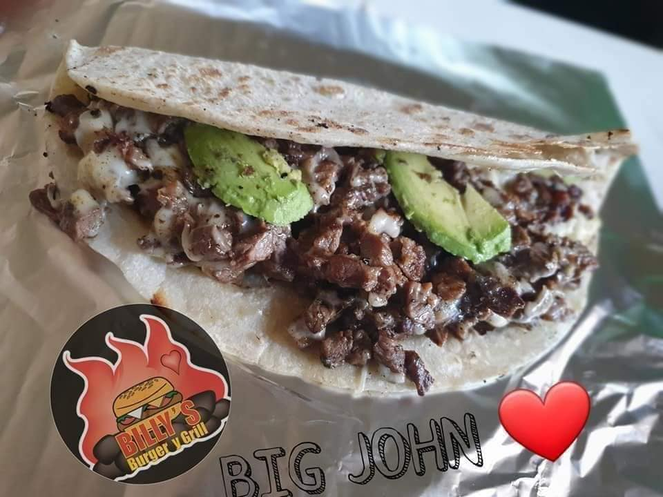 carne asada con queso gratinado en tortilla de harina 20 cm