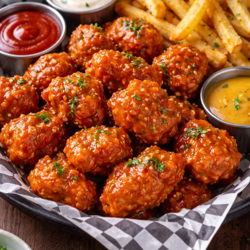 500gr De boneless bañados en tu salsa favorita, acompañados de papas a la francesa y el aderezo de tu preferencia.