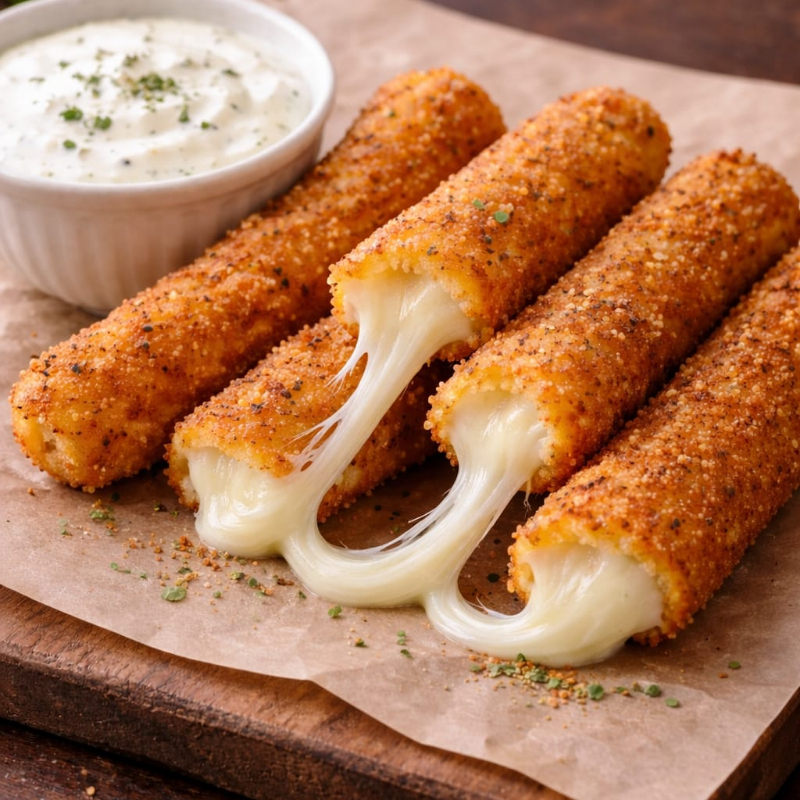 5 piezas de deliciosos dedos de queso rellenos de mozzarella