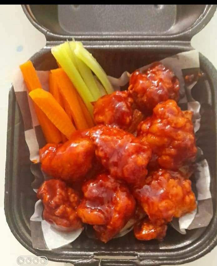 30 piezas de boneles bañandos de salsa a tu eleccion con papas fritas zanahoria y apio ranch y cátsup