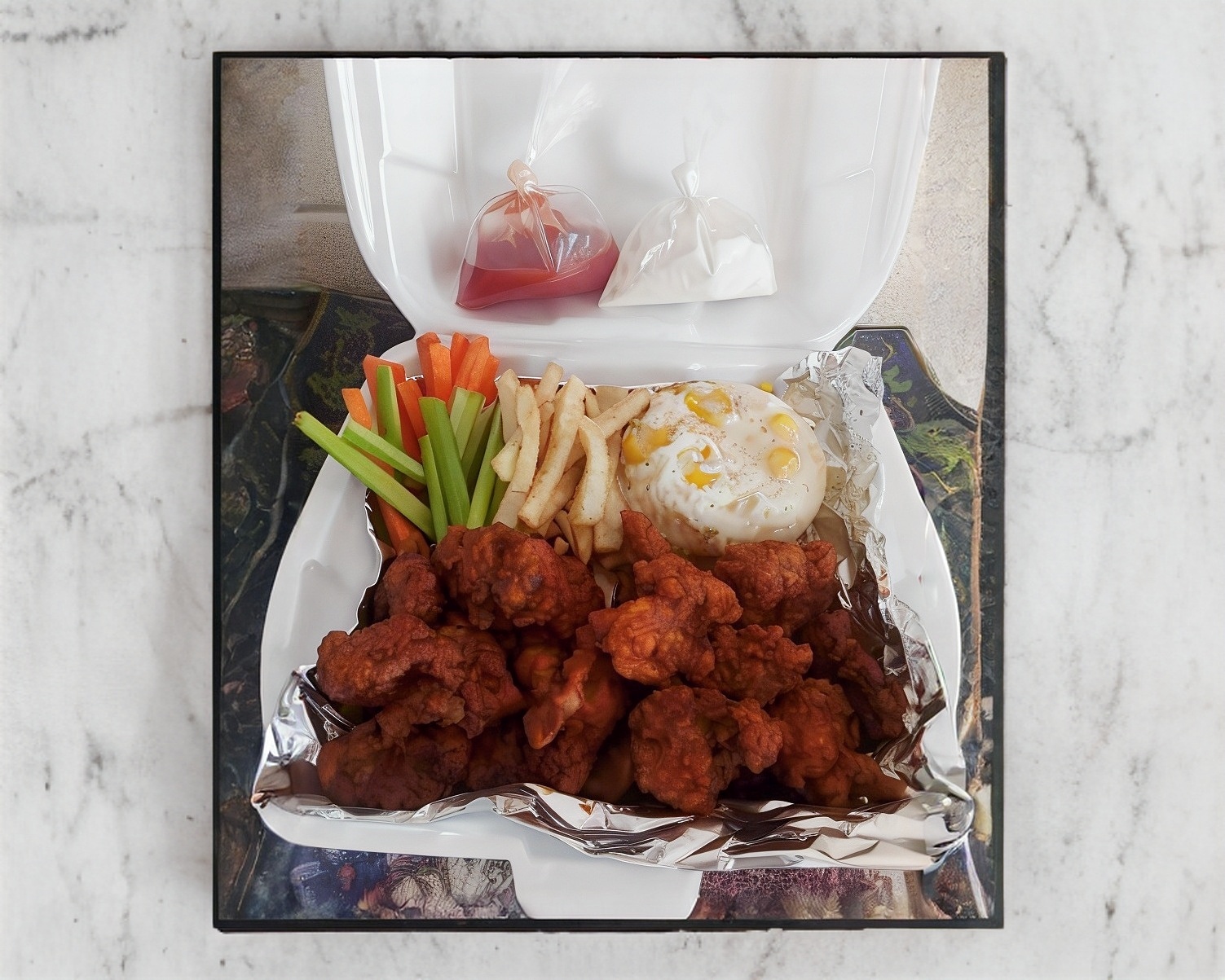 10 boneles una porción de papas fritas apio zanahoria ranch capsu