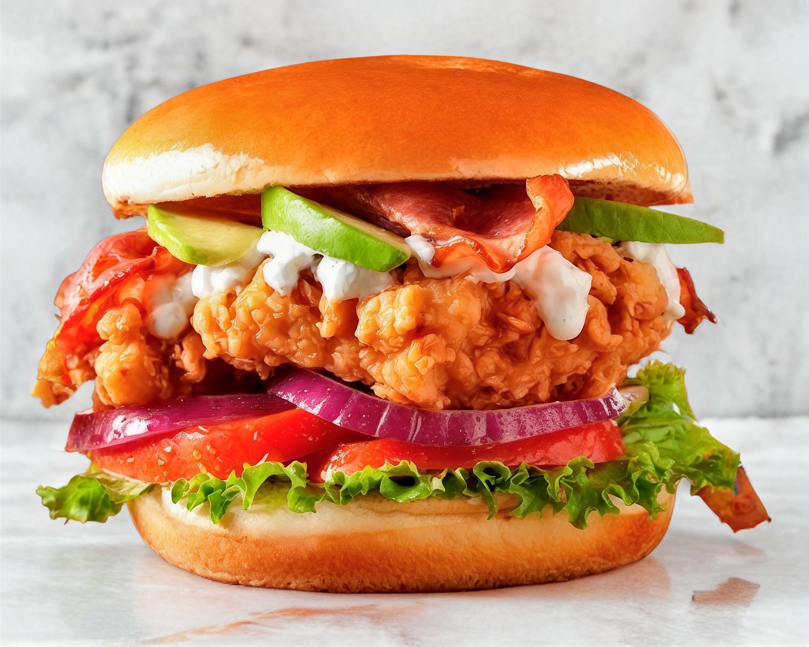 Boneles bañados de bufalo y una porcin de papas fritas ranch lechuga italiana tomate adereso mamalon de tocino y tomate