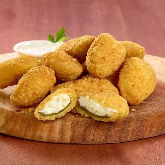 Deliciosas bolitas de papa y jalapeño fritas en su punto.