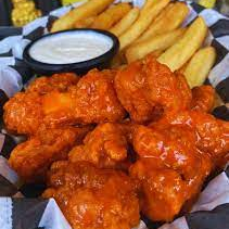 medio kilo de boneless bañados en salsa bufalo acompañado de papas bañadas en queso amarillo,tocino y ranch