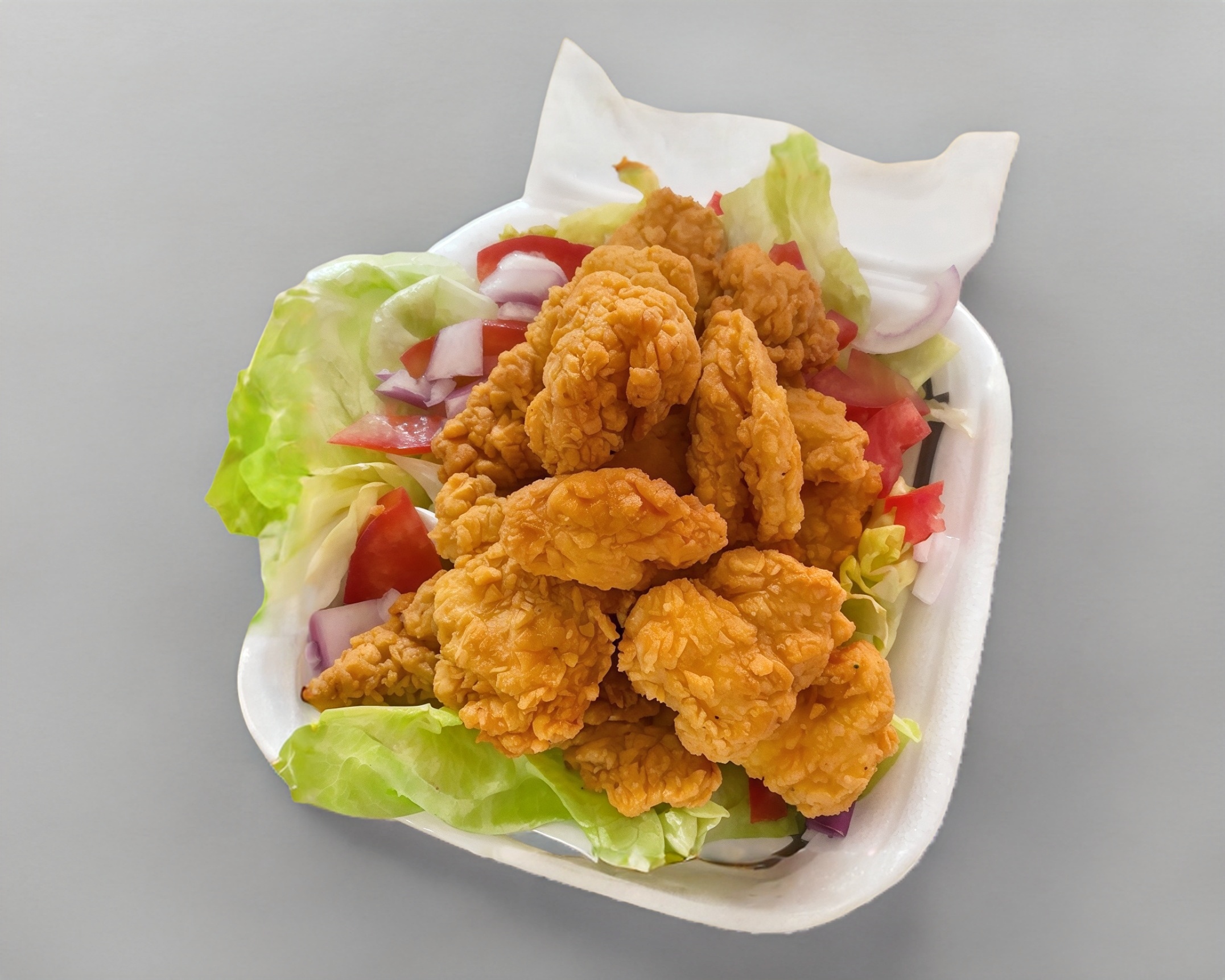8 Boneless bañados en tu salsa favorito mas pequeña porción de papas a la francesa mas un aderezo o salsa.