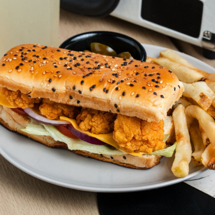 Paninic(15cm), lechuga, tomate, cebolla, queso amarillo, y bañados en tu salsa favorita, con porción de papas a la francesa y jalapeños.