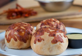 Pepperoni con queso en pan a la parmesana.