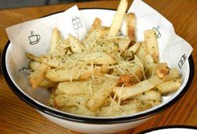 150 g de Papas a la francesa bañadas en mantequilla con un toque de queso parmesano rallado.