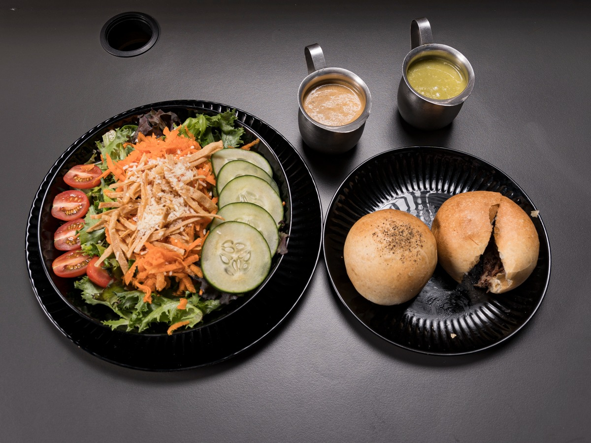 Lechuga, zanahoria, pepino, tomate cherry, queso parmesano rallado y chips de tortilla, servida con nuestro aderezo hecho en casa a base de mayonesa con un toque cítrico.
