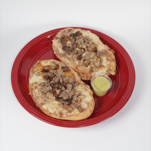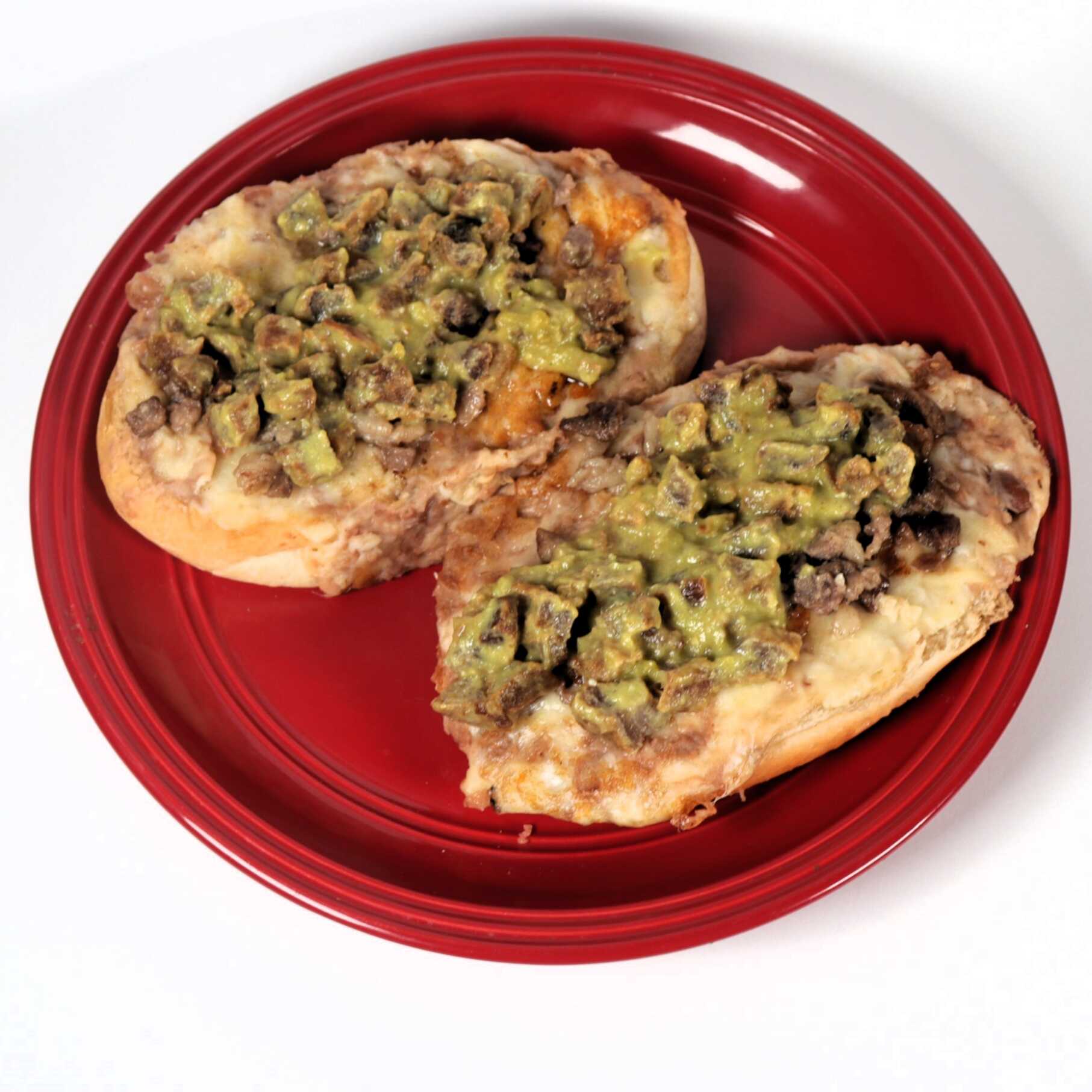 Deliciosos pan telera con frijoles, queso gratinado y carne de res picada.