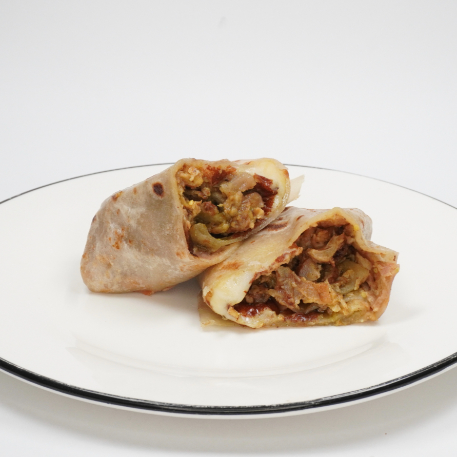 Burrito Mañanero Un burrito preparado con una tortilla de harina de 30 cm, relleno con huevo, chorizo, frijoles cocidos y un toque de queso derretido que le da cremosidad y sabor. Todo envuelto en una tortilla suave y calientita, ideal para empezar el día con energía.