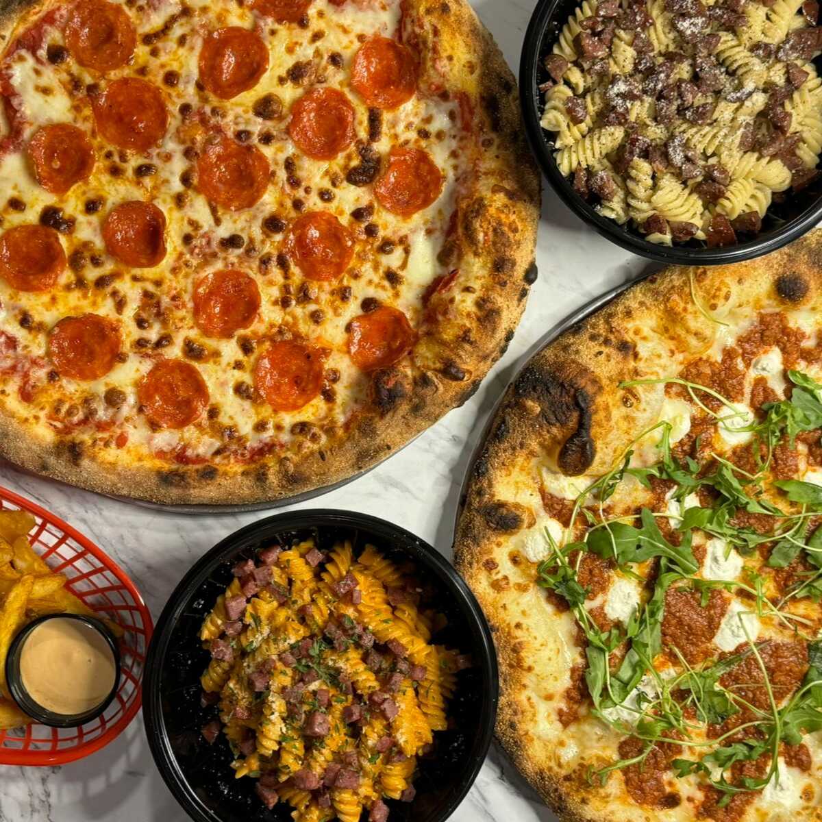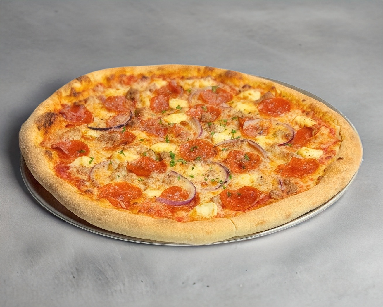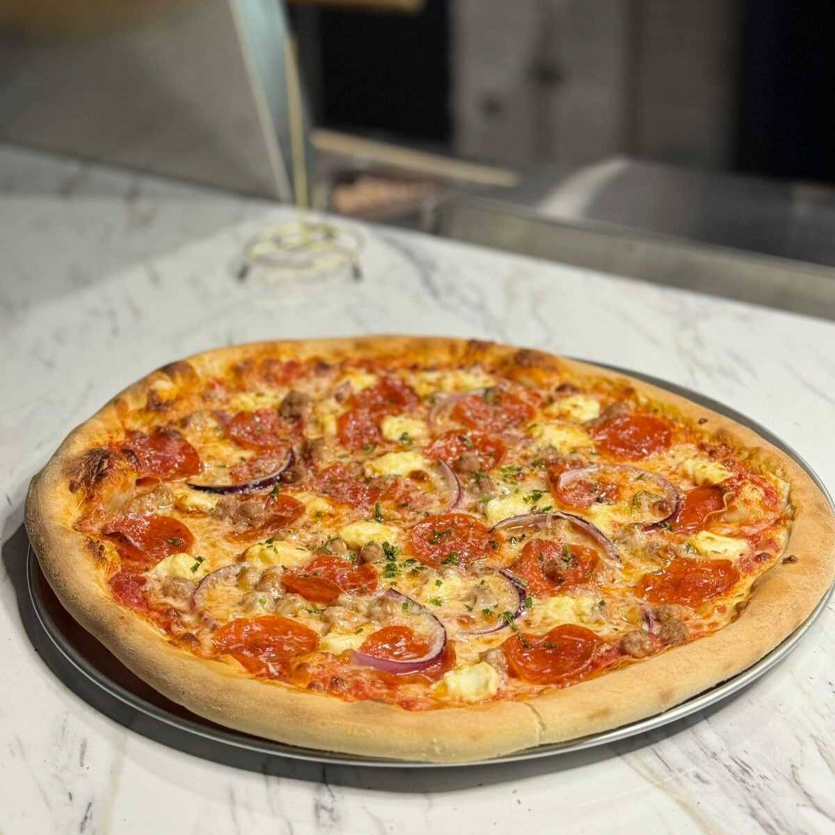 Pepperoni, salchicha italiana, queso crema, cebolla morada, parmesano y hot honey.