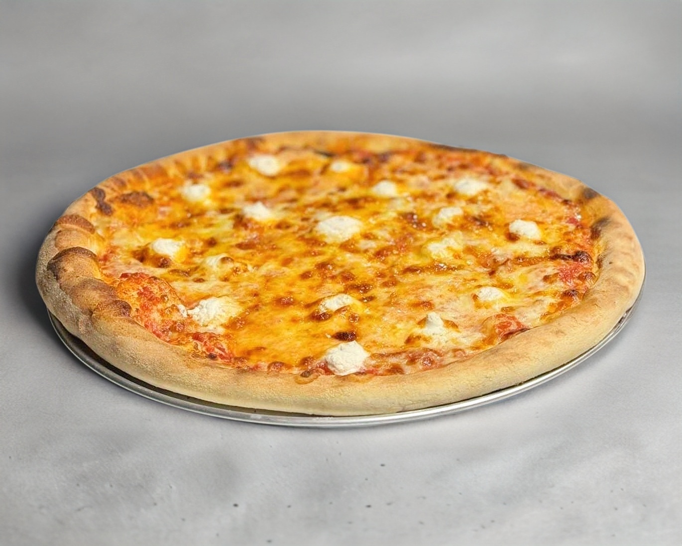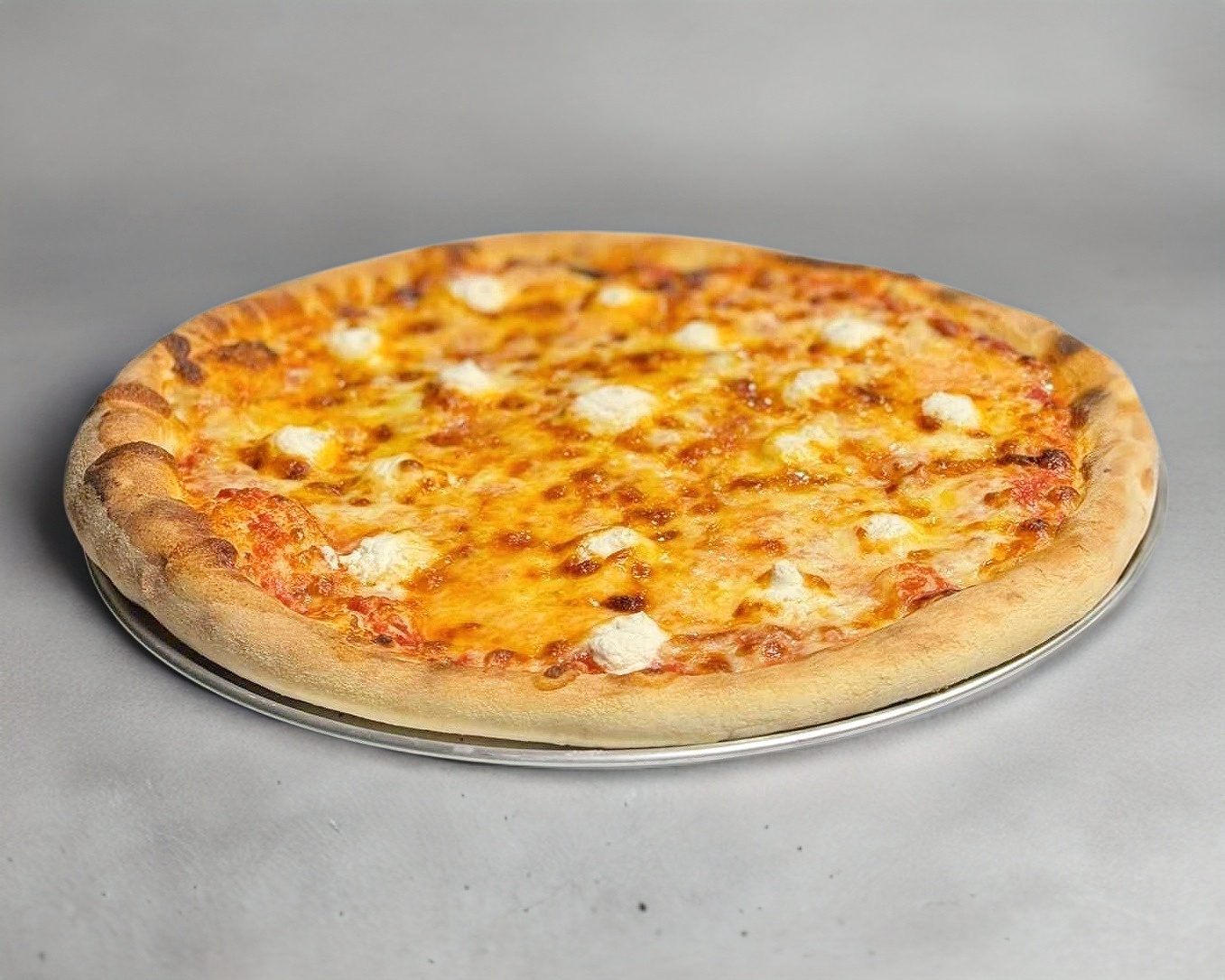 Pizza de queso mozarella, queso crema, cheddar y parmesano.