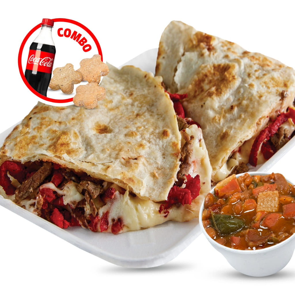 2 Flautas,2 Enchiladas y 1 Sope a elección, acompañados de papas a la francesa.