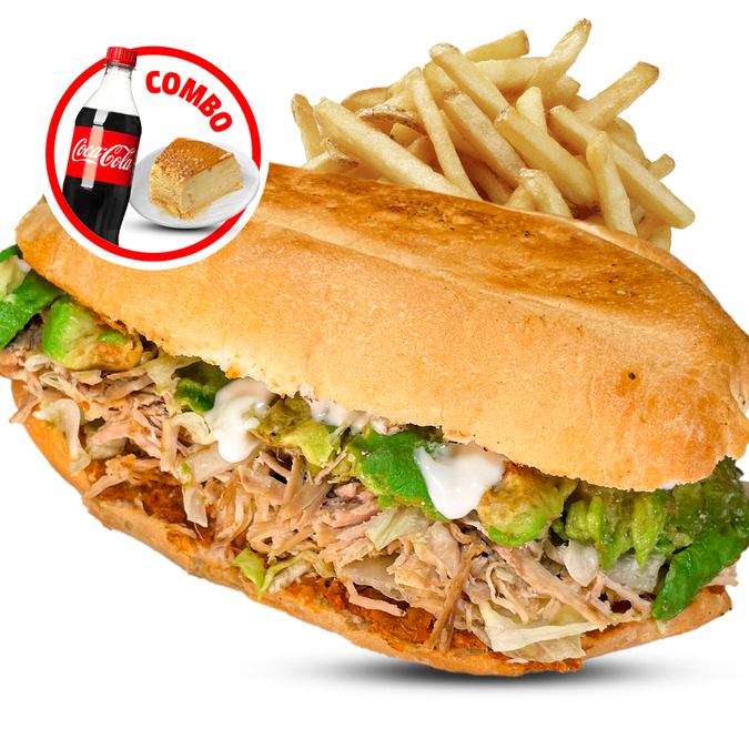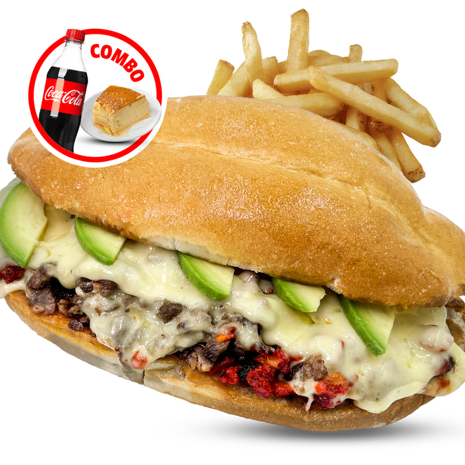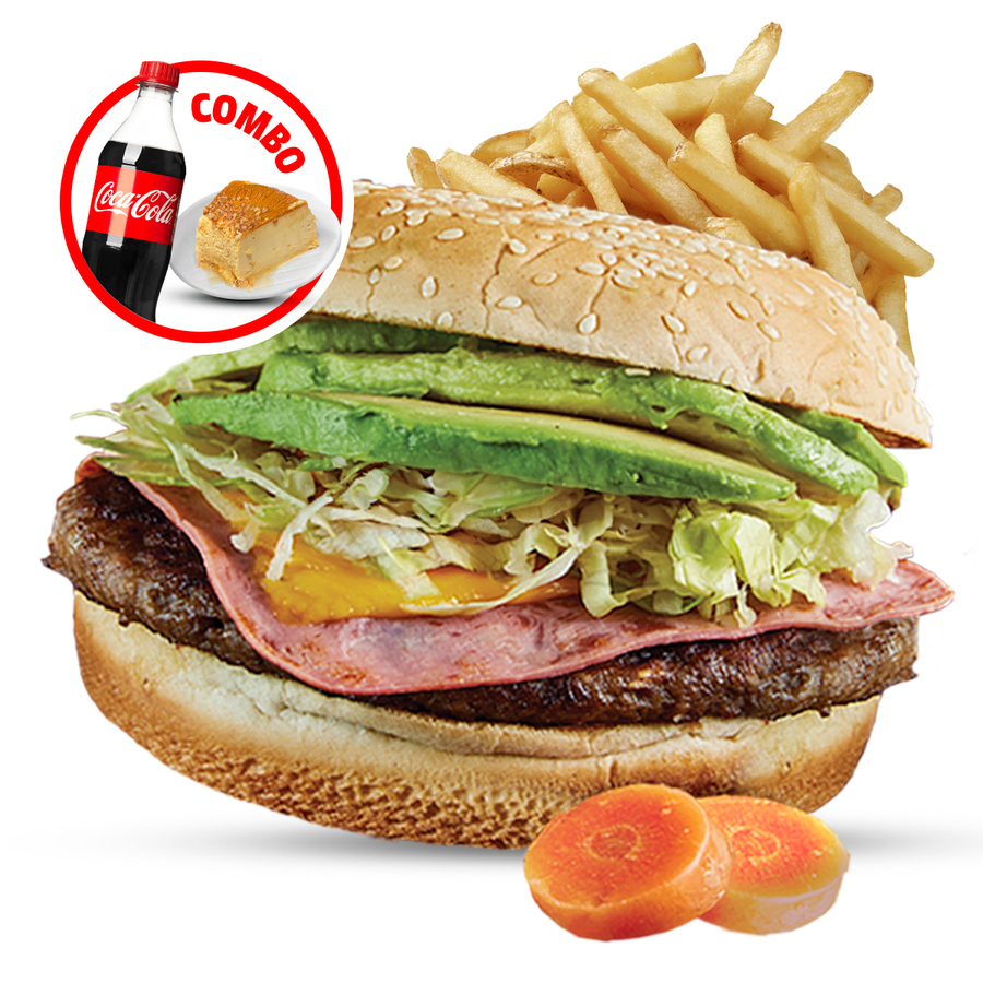 Con agucate, carne,queso,jamón y lechuga, acompañados de papas a la francesa.