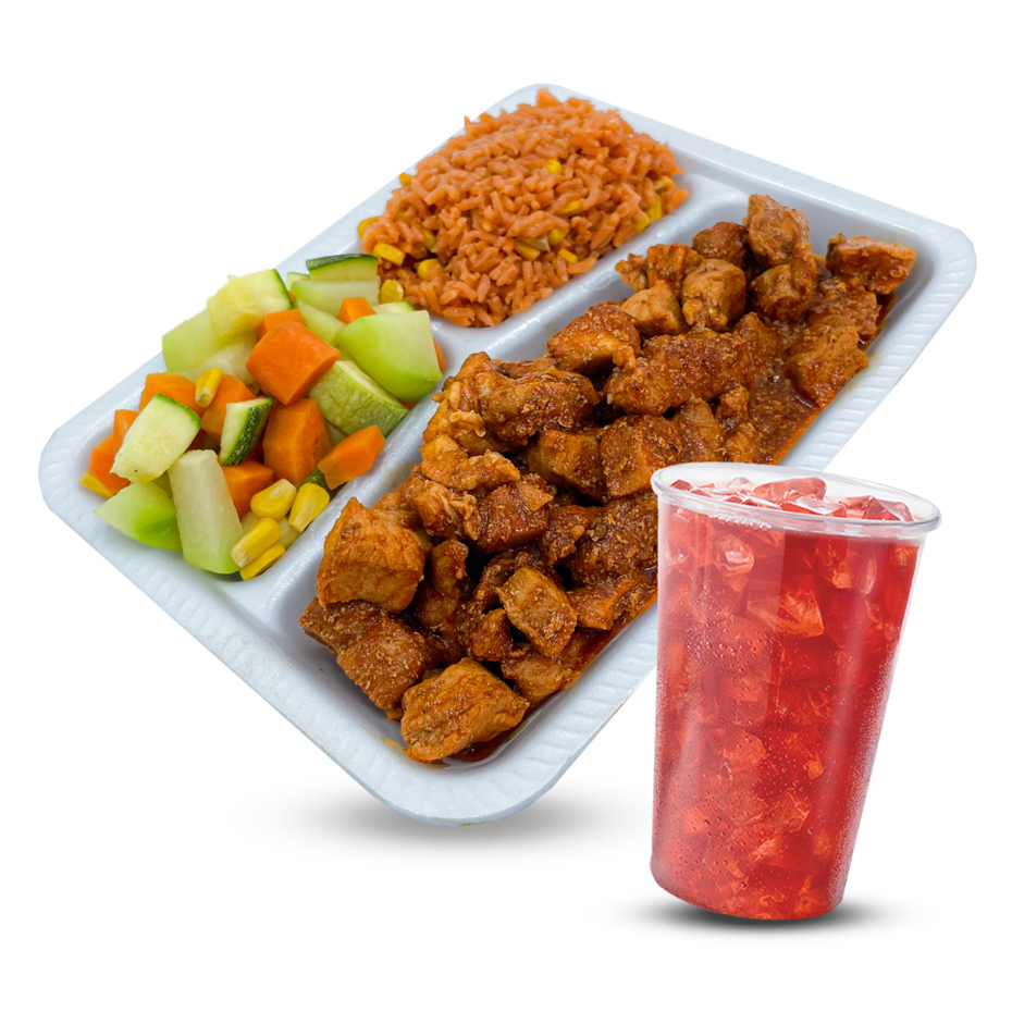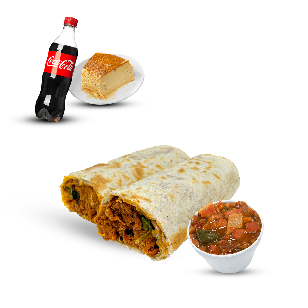 3 Pzas guiso a elección , papas a la francesa, coca cola y postre.
