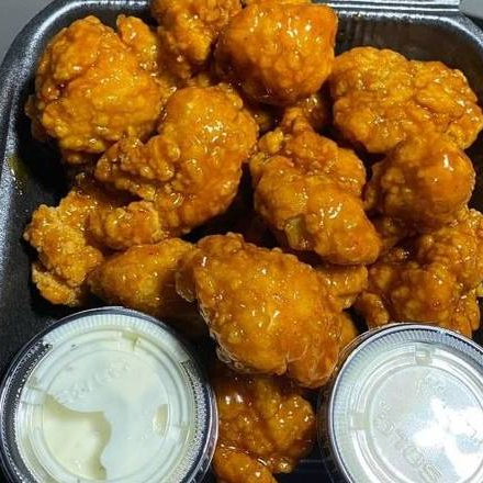 500g De boneless bañados en tu salsa favorita, acompañados de ranch.