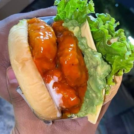 Pan brioche, boneless en tu salsa favorita, queso amarillo, lechuga, mayoapio.