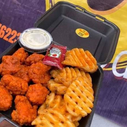 200 g De papas, acompañados de 250 g de boneless en tu salsa favorita ranch y cátsup.