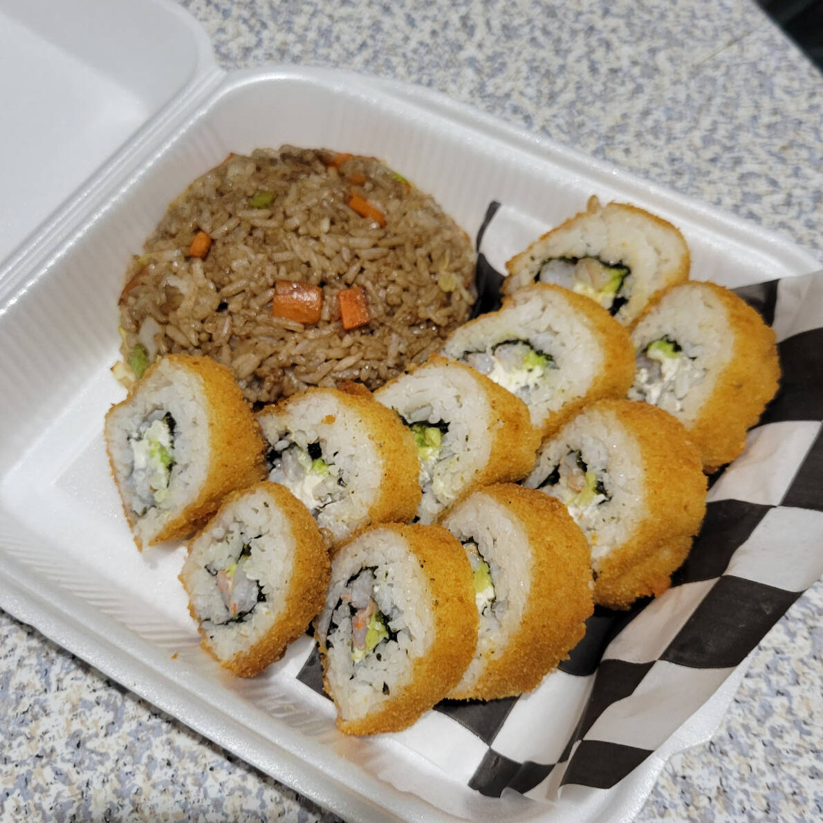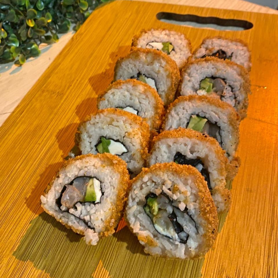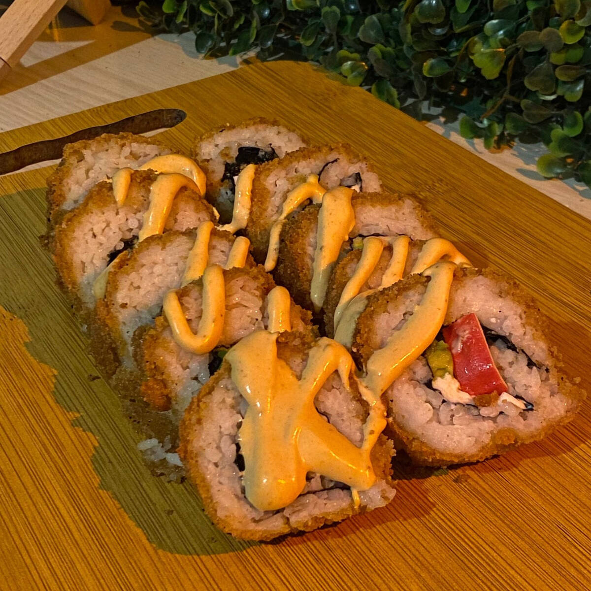 Rollo relleno de queso crema, aguacate y proteina a eleccion!