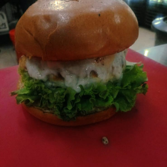 90 g de carne casera bañado BBQ lechuga tomate aderezo de la casa chile en vinagre pan de broche