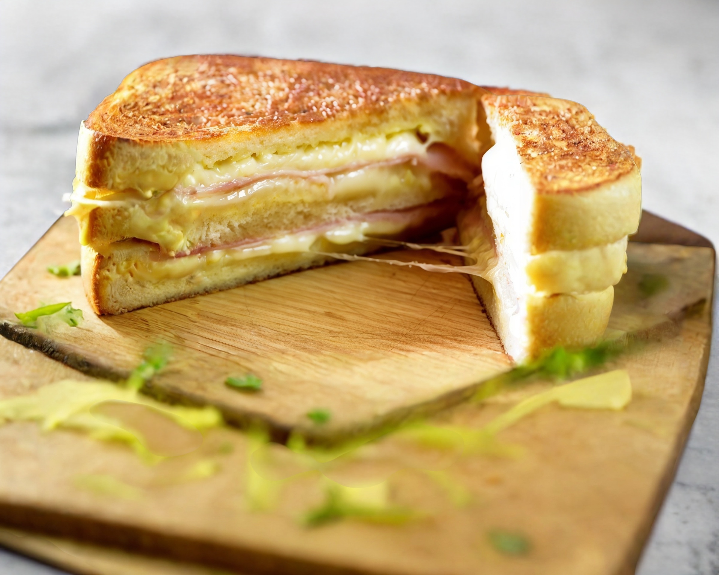 4 Rebanadas de lonche relleno de jamón,queso amarillo y queso blanco, ¡listo para un rico almuerzo o merienda!.