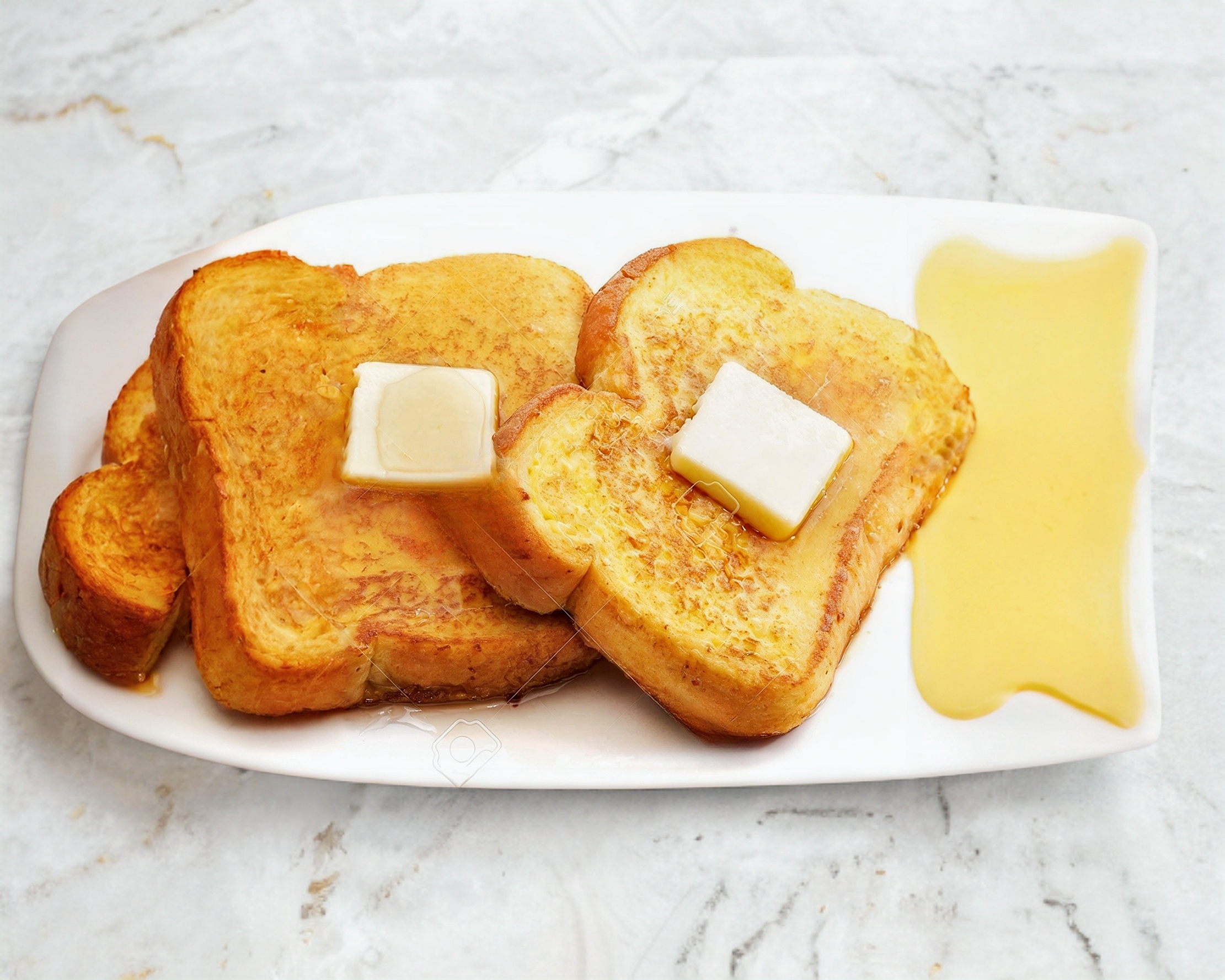 Tres rebanadas de pan blanco y mantequilla, listo para un buen desayuno o merienda.