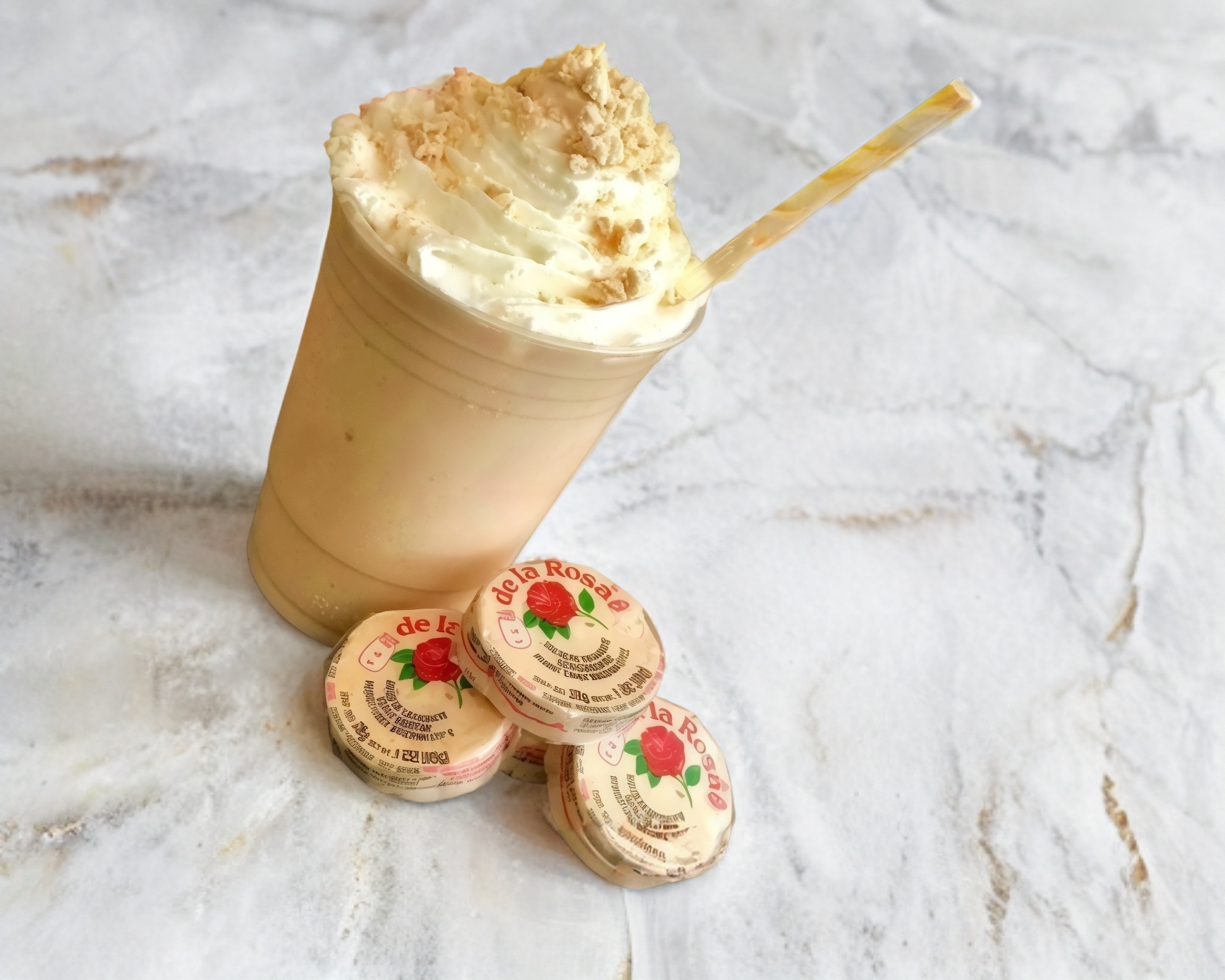 Frappe sabor mazapán, el sabor que solo rosa no puede ofrecer, ¡listo para refrescar tu día!.