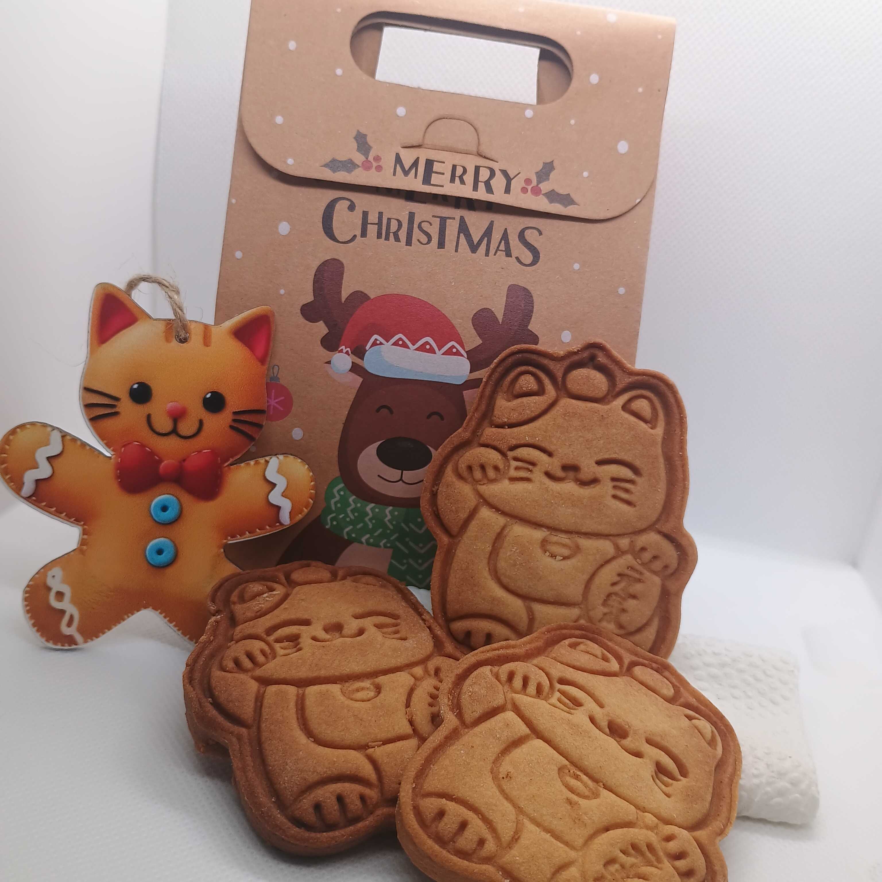 Prueba nuestras ricas galletas con una linda forma de gato, listas para un desayuno o detalle. ¡Pide ahora! 4 pz por caja