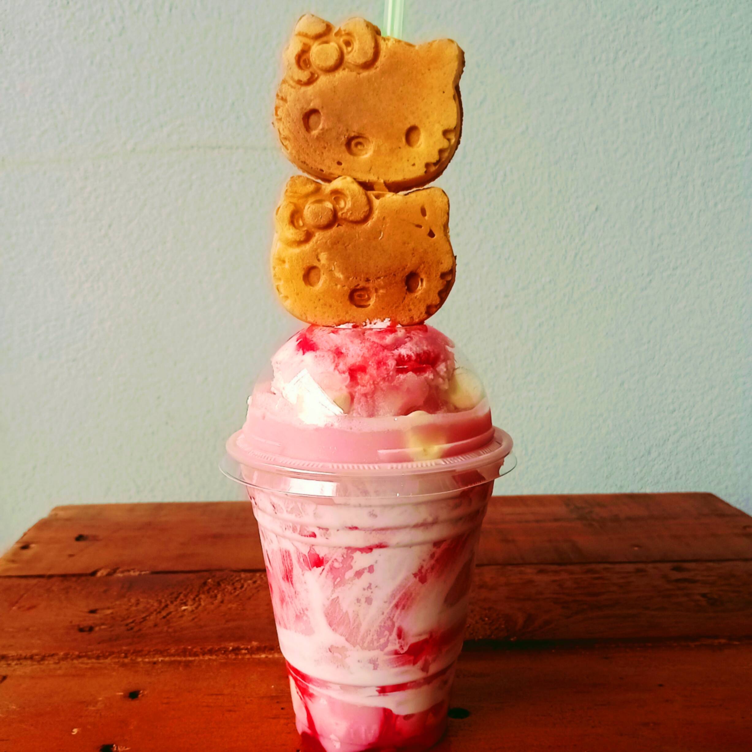 Disfruta de un rico Frappé clásico de tu sabor favorito, y acompañalo con un rico postre de Hello Kitty. ¡Pide el tuyo!