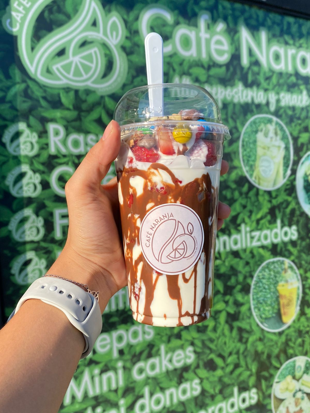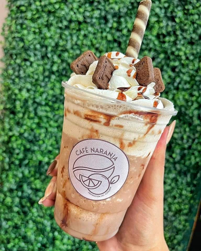Frappé de chocolate a base de leche entera o deslactosada, 16 oz.