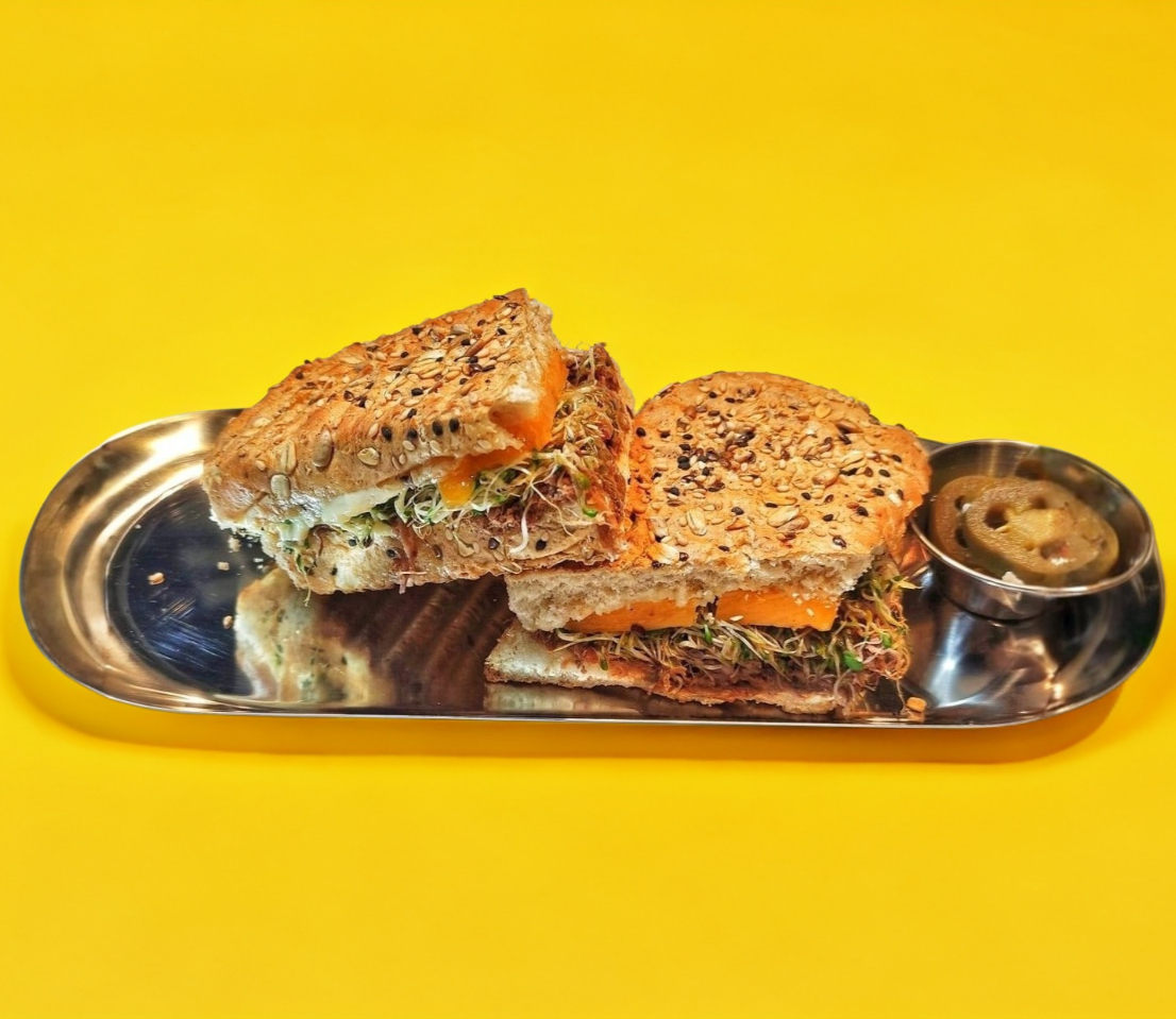 Paninni de alta calidad relleno con carne de res, queso cheddar, fresca alfalfa y franjas finas de cebolla morada. Chiles en vinagre. Adiciona ingredientes según tu hambre
