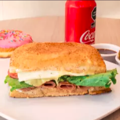 Café o Refresco*1 + Solo si pediste Café Americano*1 + Panini Carnes Frías*1 + Variedad de Pan Dulce*1