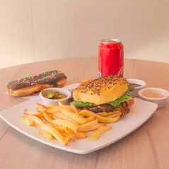 Hamburguesa de Norteña*1 + Variedad de Pan Dulce*1 + Café o Refresco*1 + Solo si pediste Café Americano*1