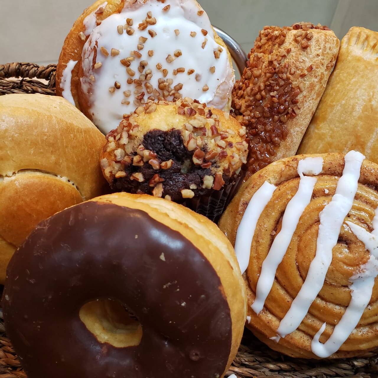 Bisquete Omelette Jamón y Tocino*1 + Variedad de Pan Dulce*1 + Café o Refresco*1 + Solo si pediste Café Americano*1