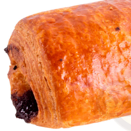 Pan de pasta hojaldre con relleno de barras de chocolate.