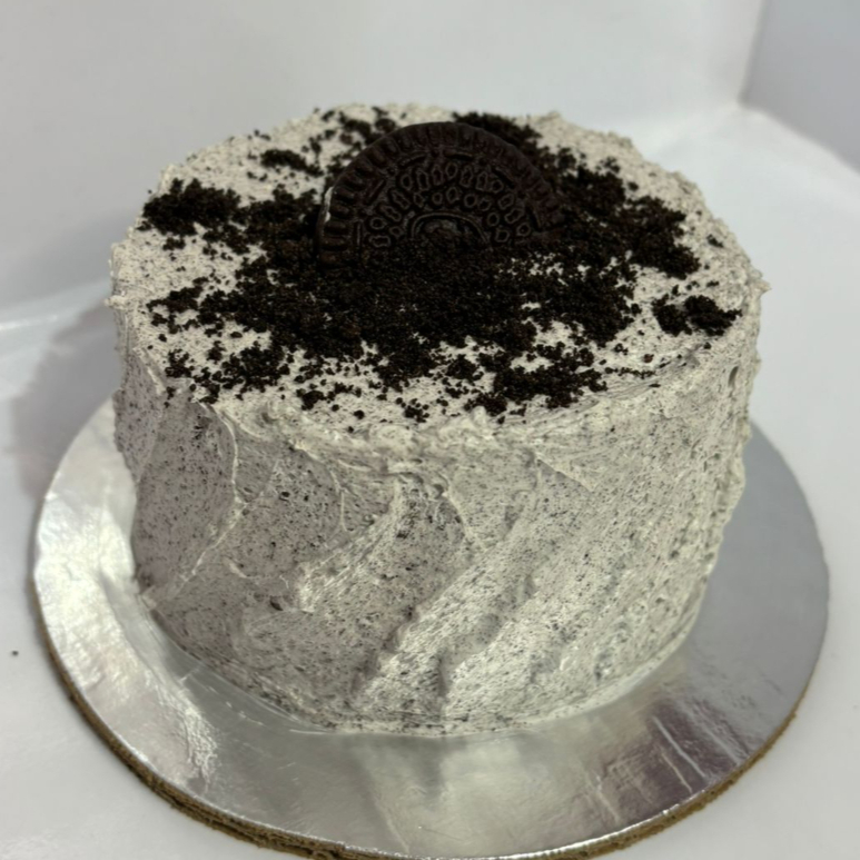 elaborado con pan vainilla y trozos de Galleta oreo,Relleno y cubierto con betun chantilly y trozos de galleta