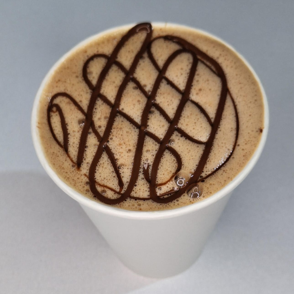 Cafè elaborado con nuestra especialidad de expresso y leche a su elección, calentada con bombilla y combinado con una deliciosa salsa de chocolate 🍫