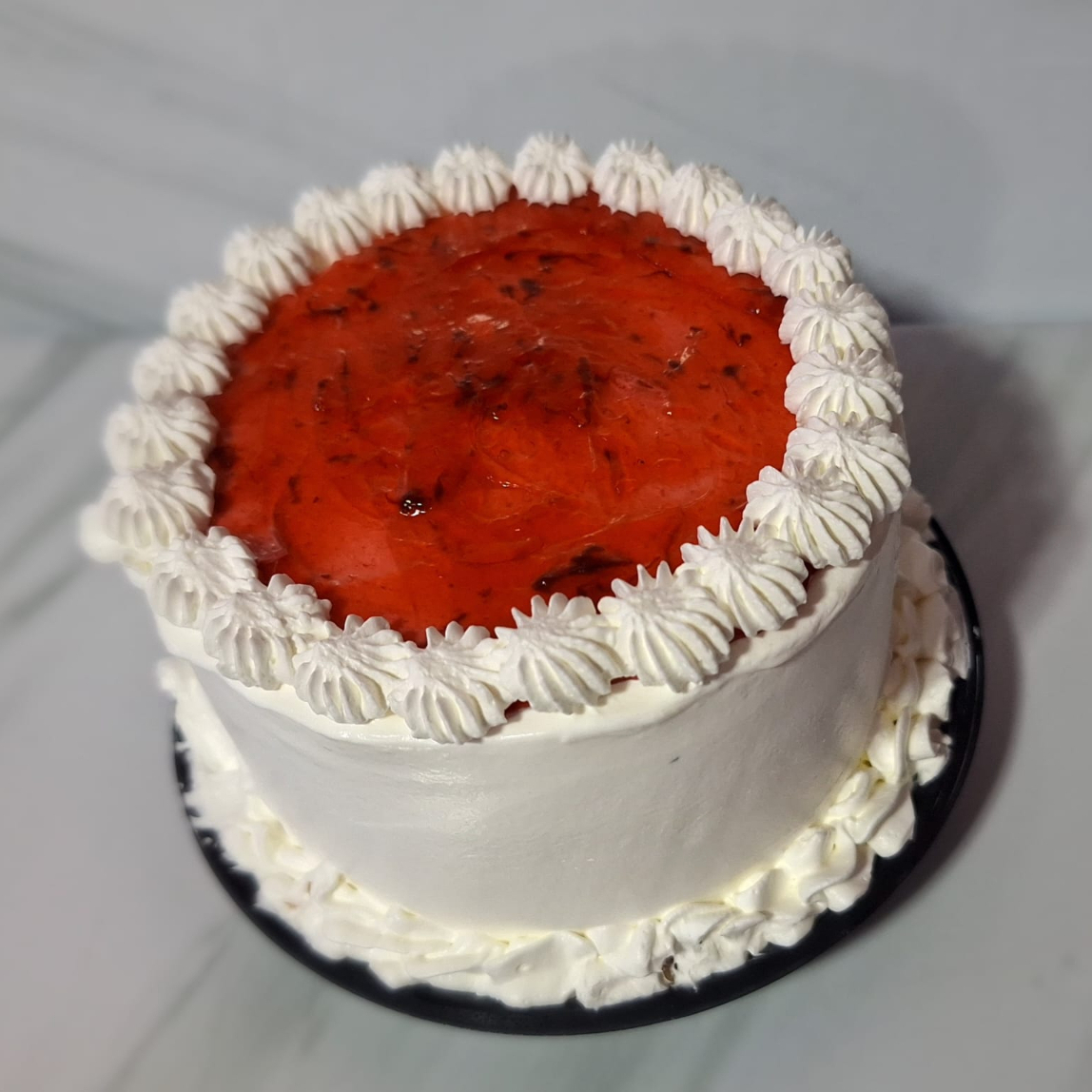 Elaborado con pan vainilla, semi húmedo relleno de mermelada de fresa