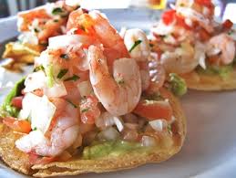 Tostada de Ceviche con Camaron