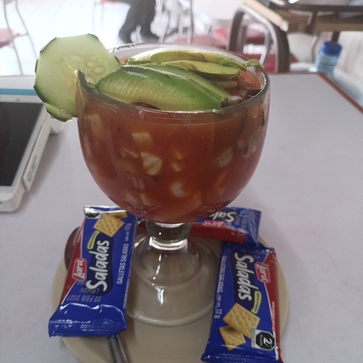 coctel de camaron acompañado de galletas salada