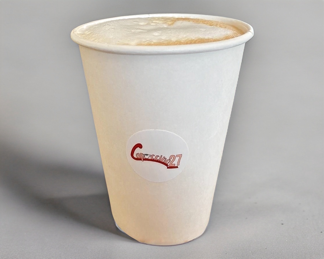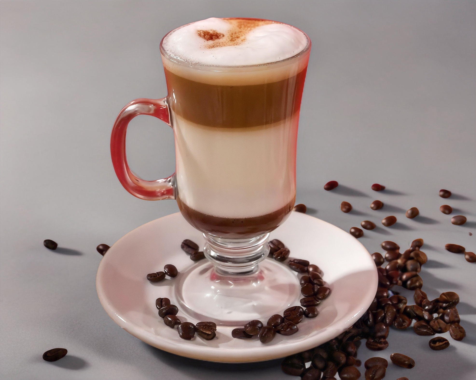 Espreso, Leche Entera o Deslactosada (La espuma es mayor porcion a la leche) Con dos endulzantes y un Mezclador