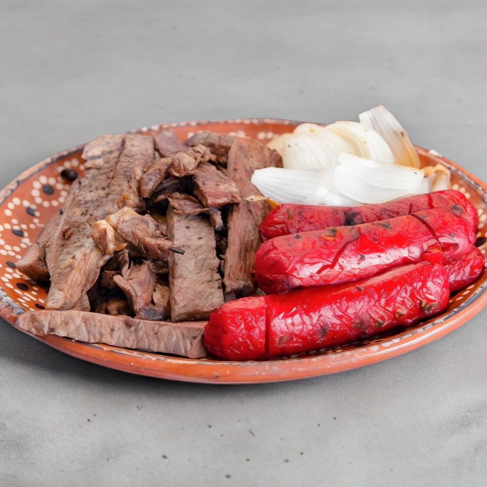4 a 6 personas incluye un kilo de sirloin o fajita especial, 2 salchichas, tortillas, salsas y totopos.