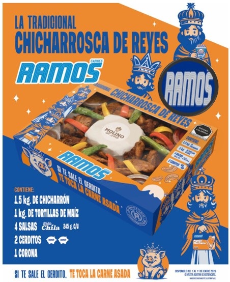 1.5 kg de Chicharrón + 1 kg de Tortillas de Maíz + 4 Salsas Chila (245 grs c/u) + 2 Cerditos+ 1 corona