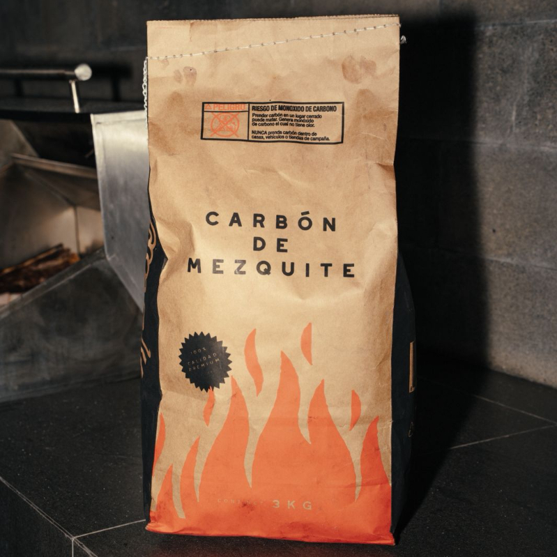 Puro carbón de mezquite, pa echar humito. Presentación de 3 kg.