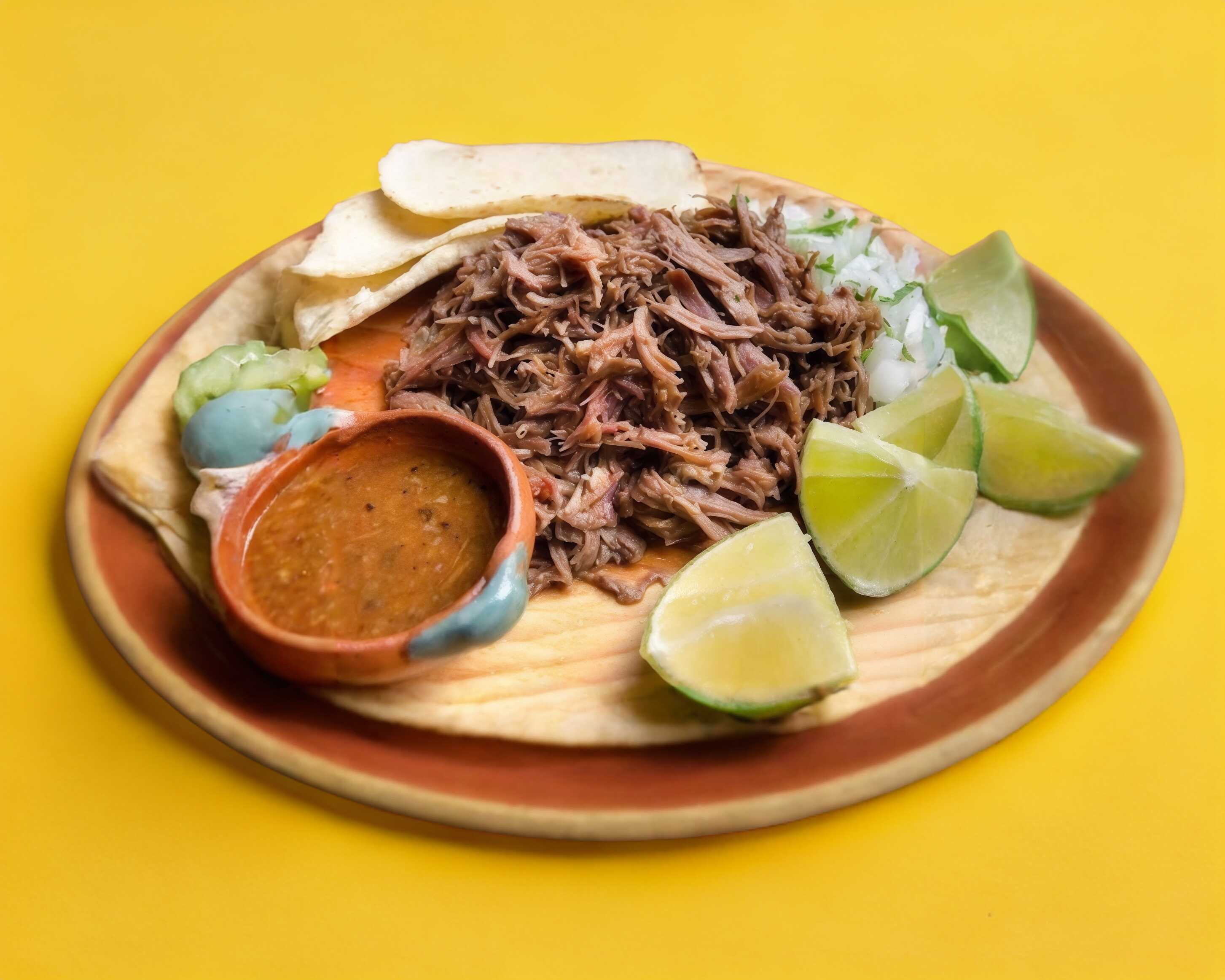 Cebolla con habanero y cilantro limon y salsas roja verde