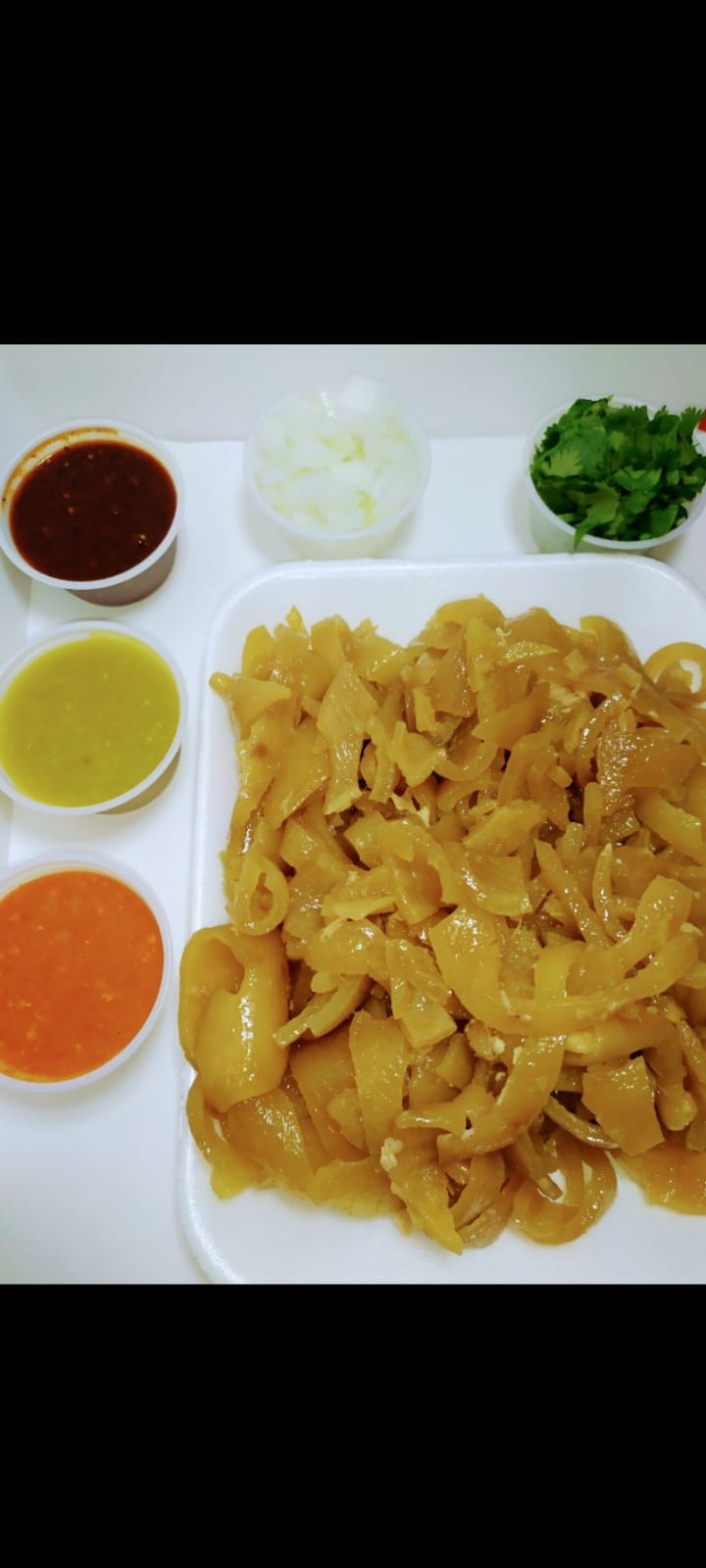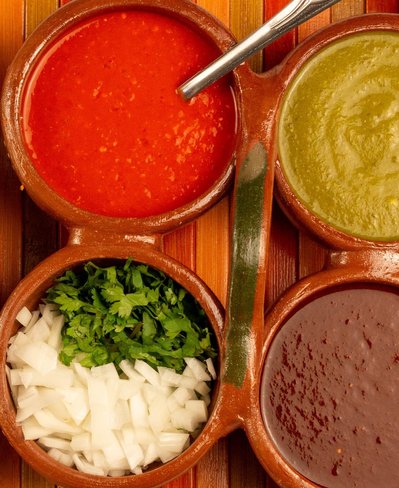 Salsa, Tortillas, Limón, Cebolla, Cilantro.
