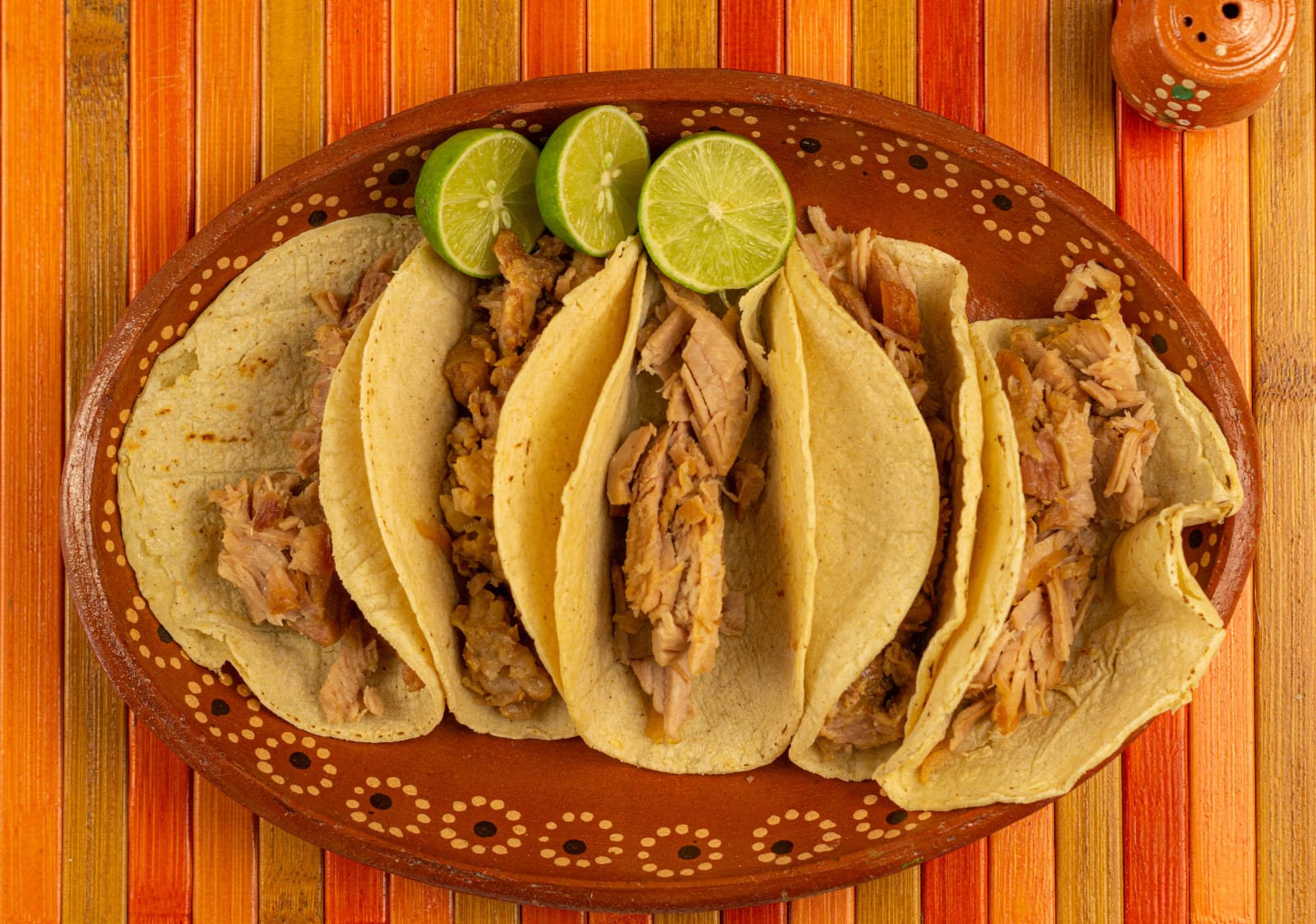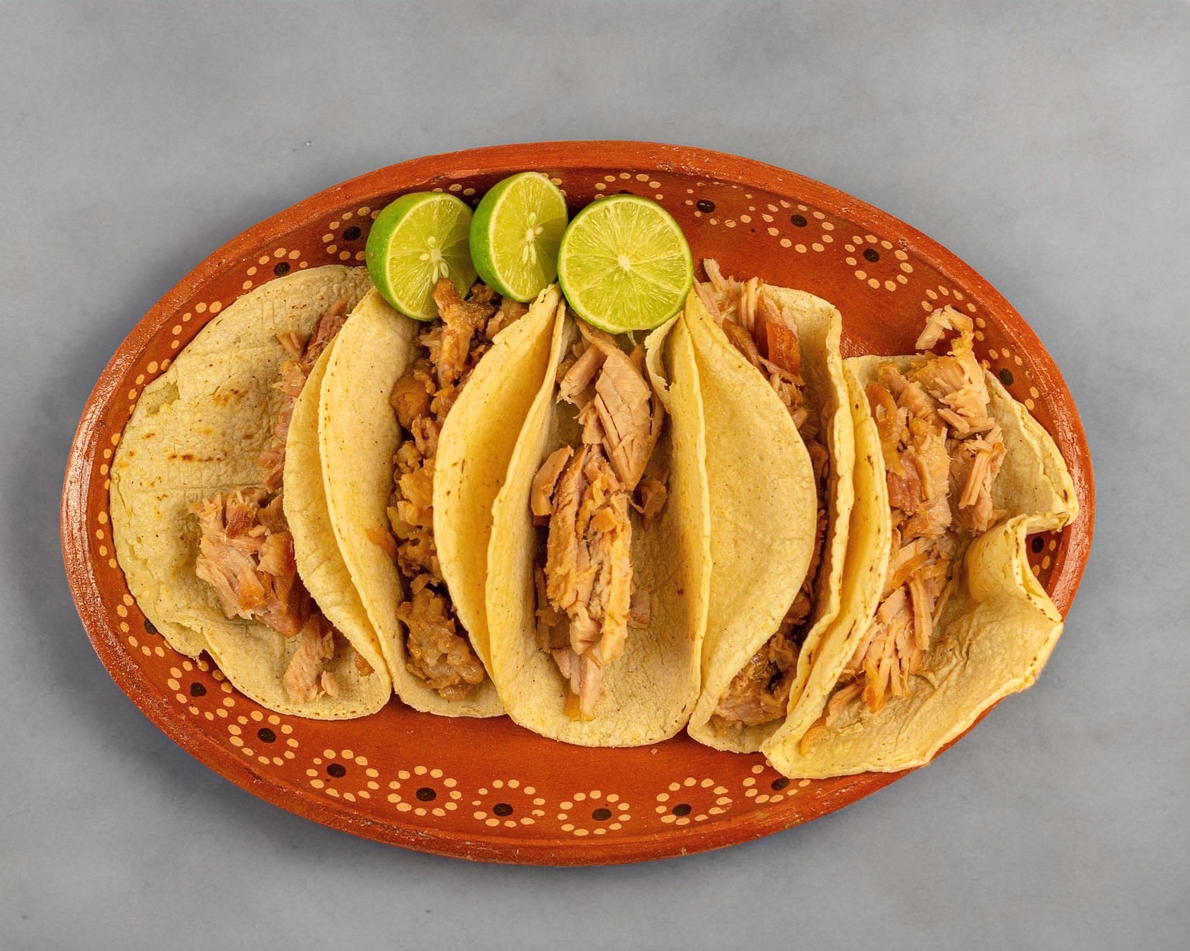 6 tortillas acompañadas de 1/4 kilo de carnitas con Salsa, Limón, Cebolla, Cilantro.