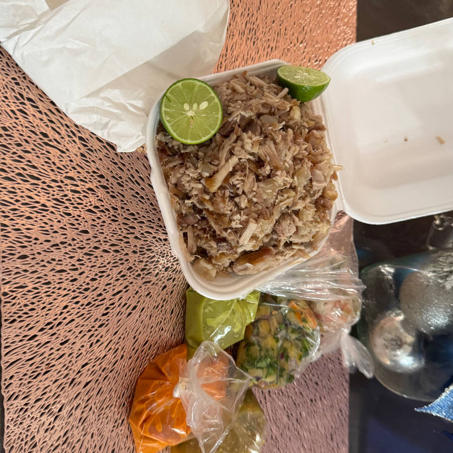 1/4 de tortillas, cebolla morada, salsas, pico de gallo, piña con habanero