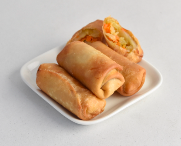 4 rollitos fritos rellenos de repollo, zanahoria y germen de soya.